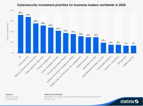 Across all industries, business leaders worldwide will prioritize investments in 2026, with AI and cloud security taking the lead. Our recommendations align with the anticipated risks others foresee.